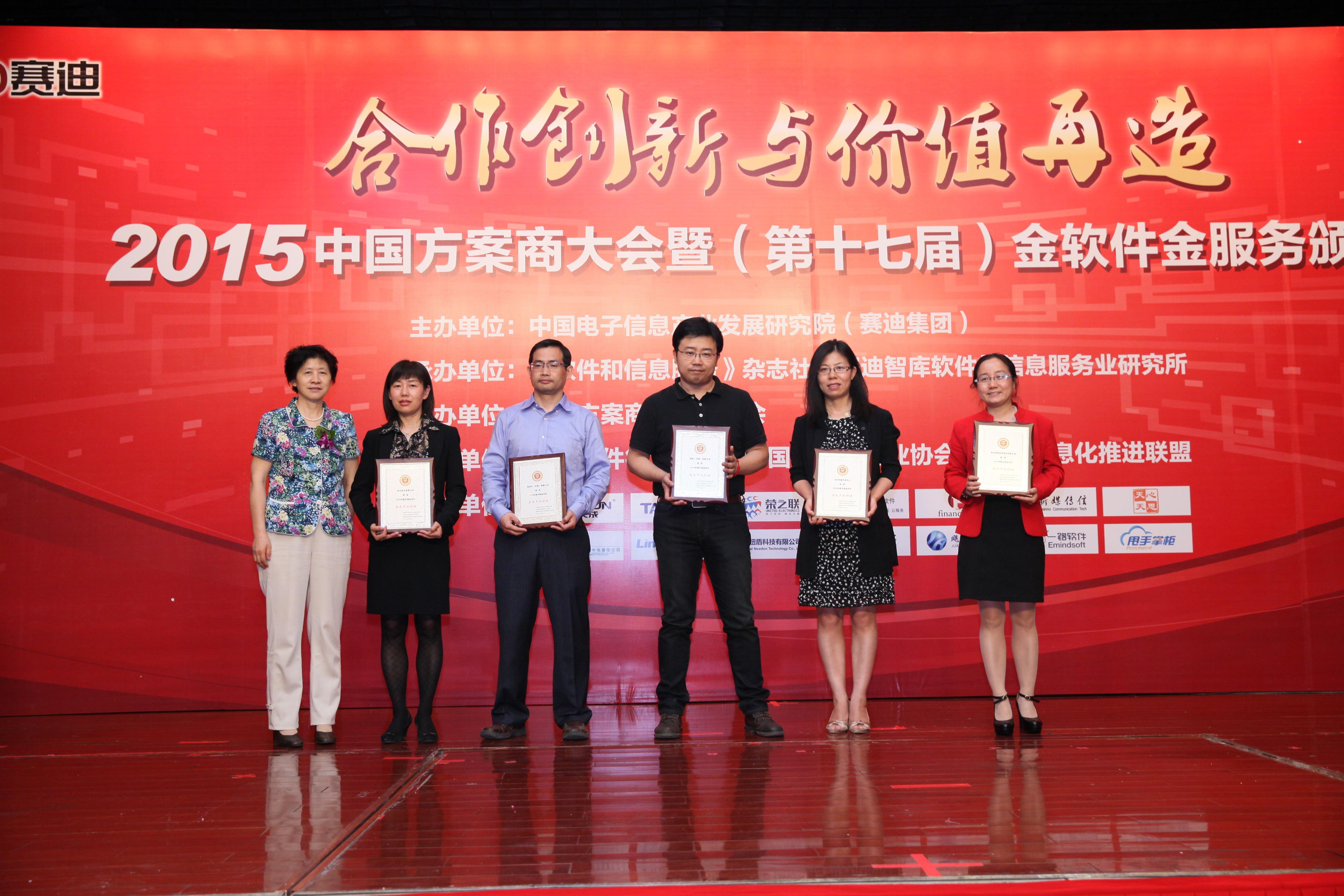 5月20日,在主题为“合作创新与价值再造”的2015中国方案商大会上,用友网络与华为、IBM、微软、英特尔一起,荣获“2015中国金软件五大产业领袖”。大会认为:用友通过企业软件、企业互联网服务、互联网金融,服务企业和组织的互联网化,以服务企业为主体,推进了互联网+国家战略的落地,创新性地助力产业升级,获得实效。